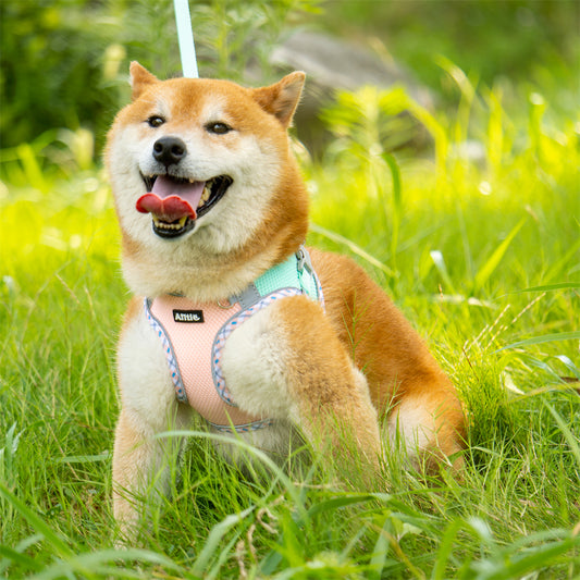 Aiitle Soft Adjustable Mesh Dog Harness Leash Set Pink