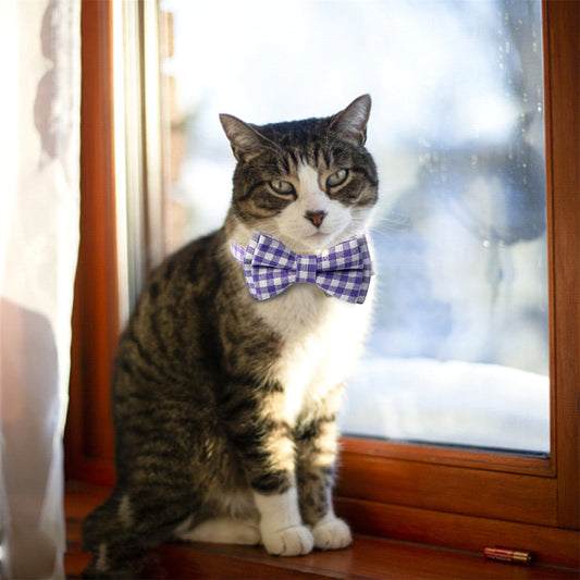 Aiitle Cute Plaid Bow Tie Purple Cat Collar