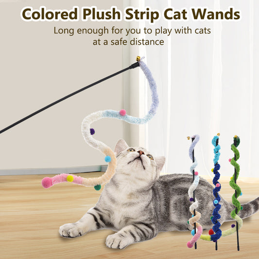 Aiitle Plush Strip Cat Teaser Stick 3 PCS Set