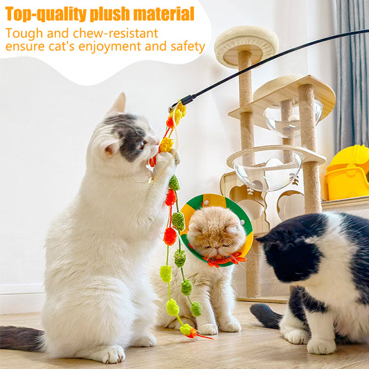 Aiitle Colorful Plush Ball Cat Teaser Wand 3 PCS Set