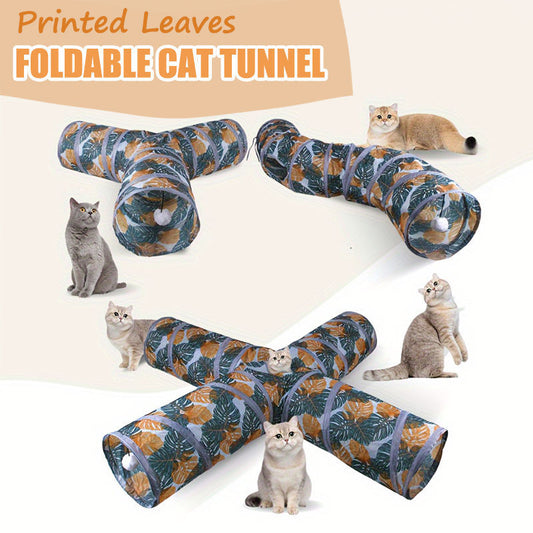Aiitle Printed Leaves Foldable Cat Tunnel