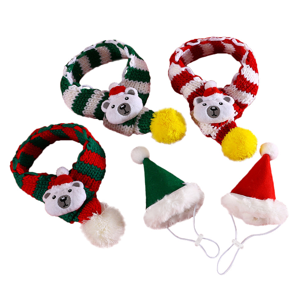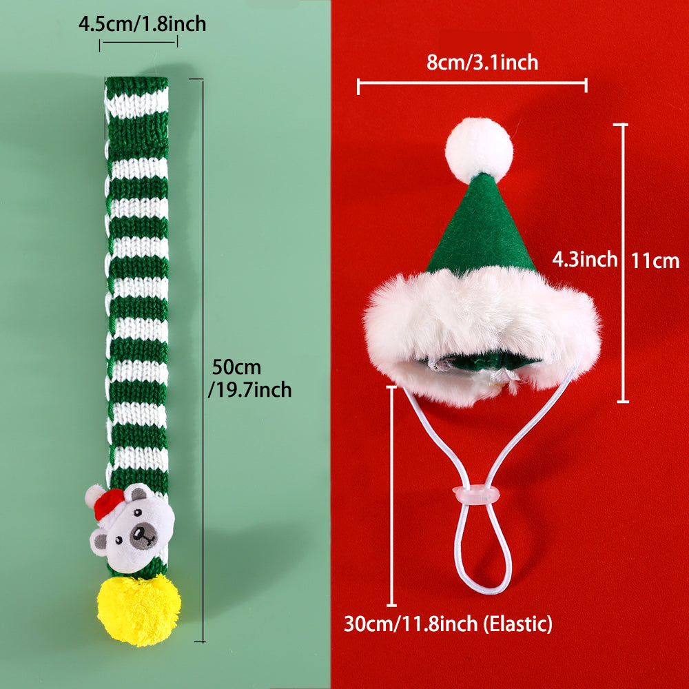Aiitle Cute Bear Pet Christmas Striped Scarf Hat Set