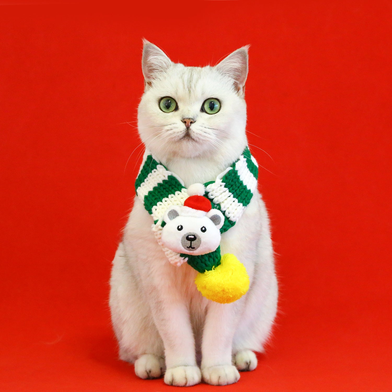 - Classic striped style with Christmas color not only stylish but also full of festival atmosphere. The white 3D plush bear decor with small hat adds more cuteness for your pet.