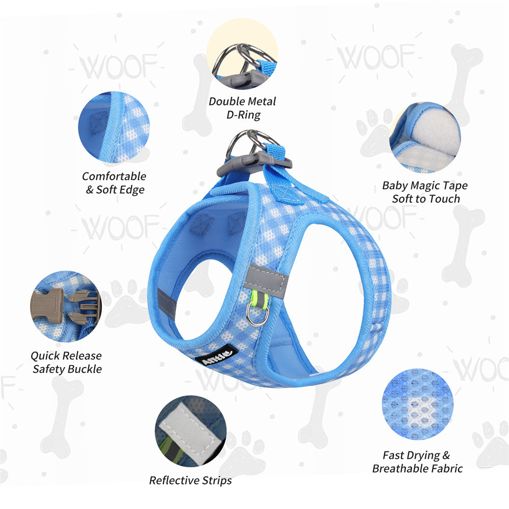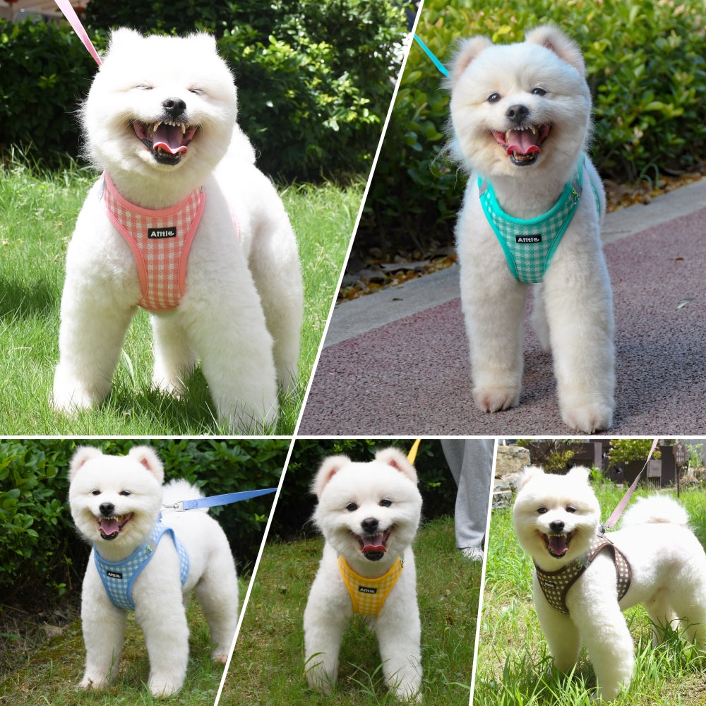 Aiitle Soft Adjustable Plaid Mesh Dog Vest Harness with Leash Set