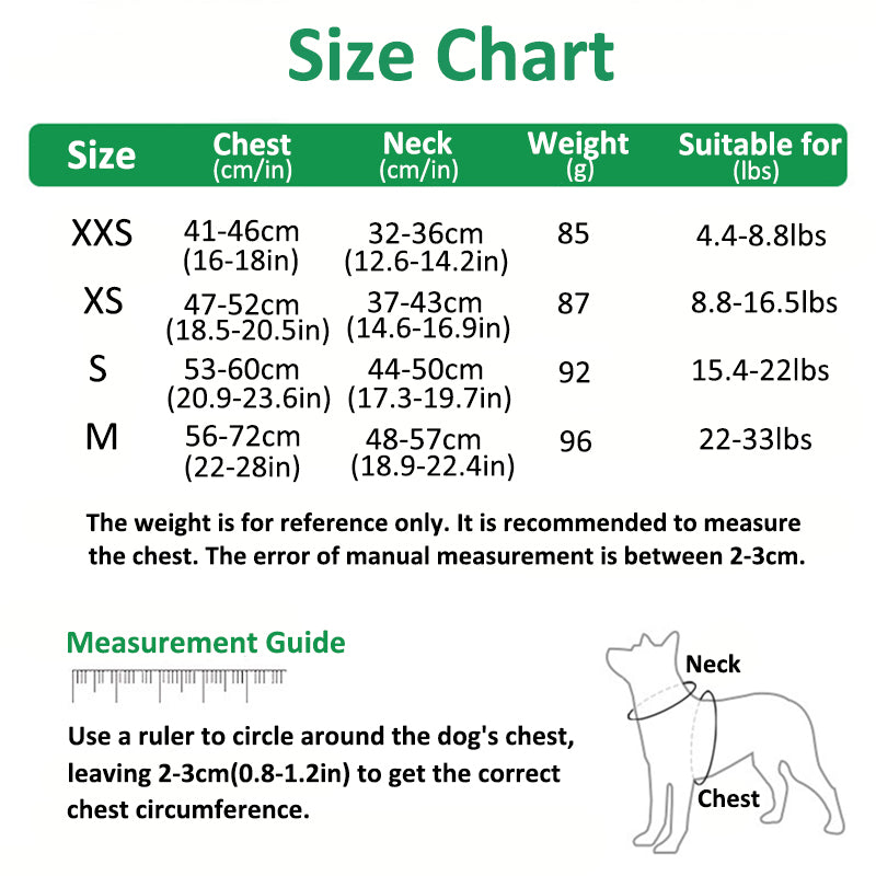 Please measure your pet's size before ordering. - Because of the different measurement methods, please allow 0-1/2inch difference due to manual measurement. Hope you could understand