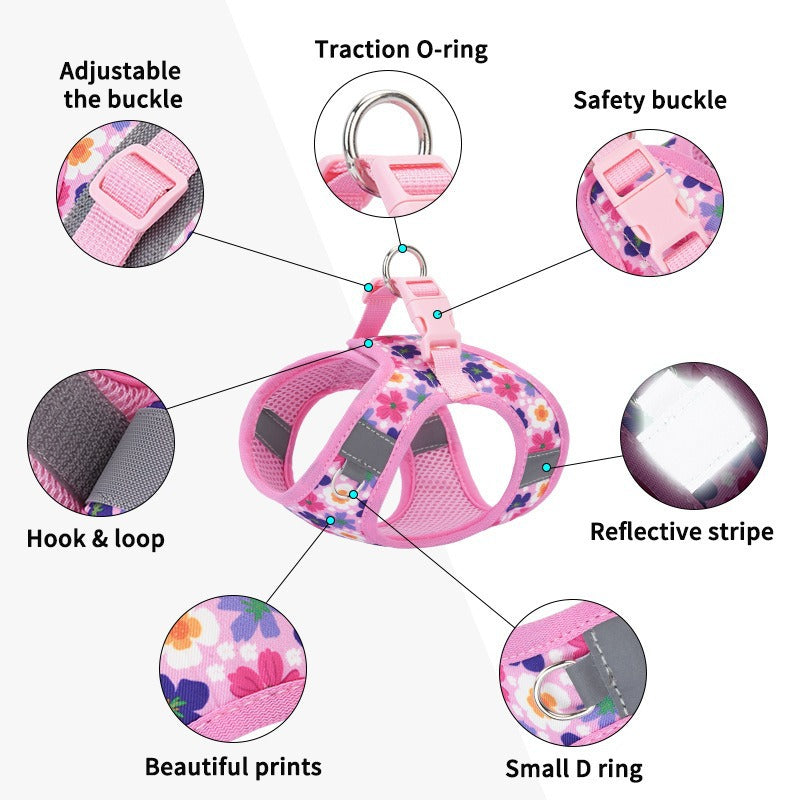 - 1* Print Floral Dog Vest Harness+ 1 Leash